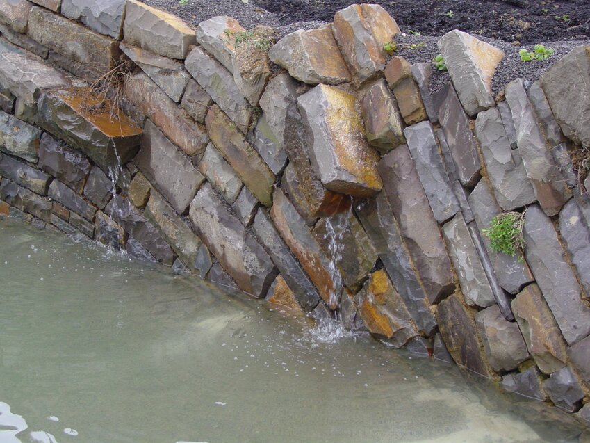 Als Trockenmauerwerk bietet Grauwacke natürlichen Lebensraum für Kleintiere und Pflanzen und ist somit ein ökologischer Beitrag zum landschaftsgebundenen Bauen.