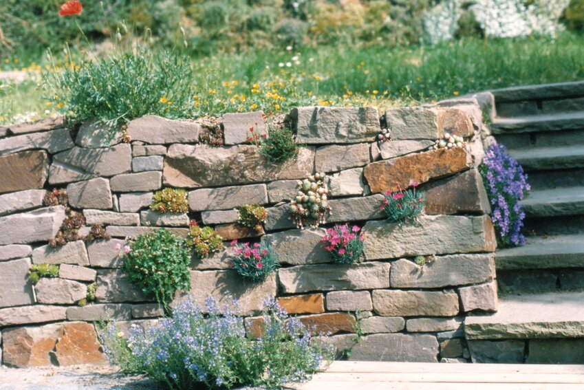 Der Gestaltung einer Trockenmauer sind keine Grenzen gesetzt.