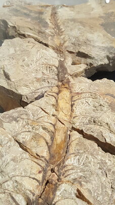 Ein ca. 2,5 m langer Gesteinsblock wurde im Frühjar 2009 geborgen und durch den Geologen präpariert.