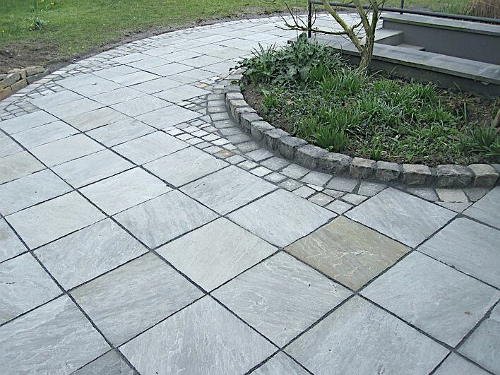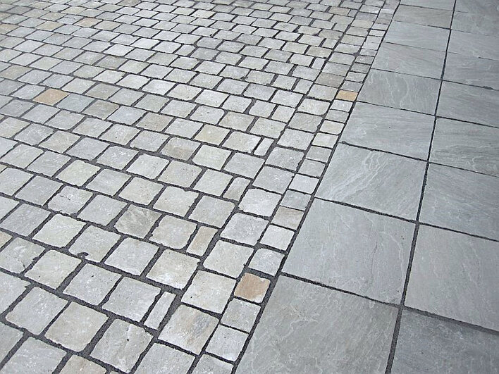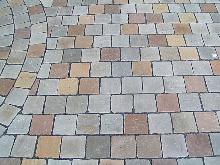 Durch seine quarzitische Bindung und der hohen Druckfestigkeit ist dieser Quarzsandstein zur Verwendung im Aussenbereich hervorragend geeignet.