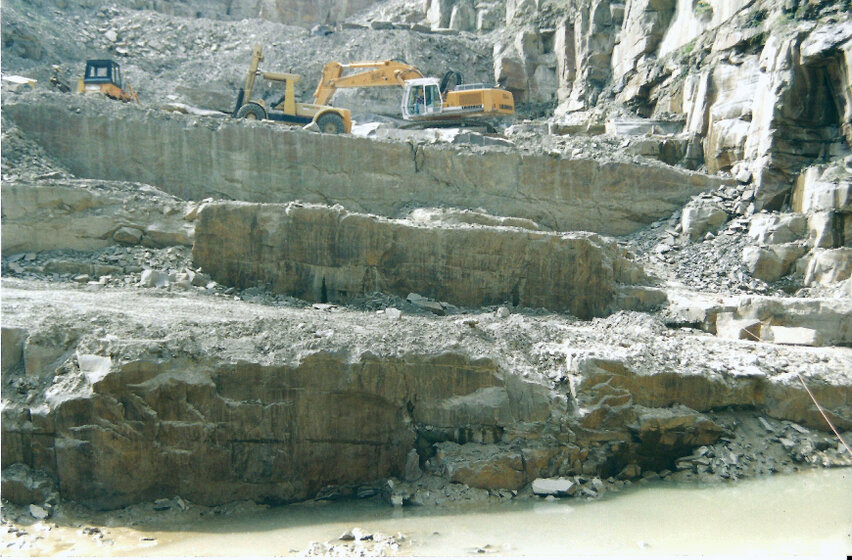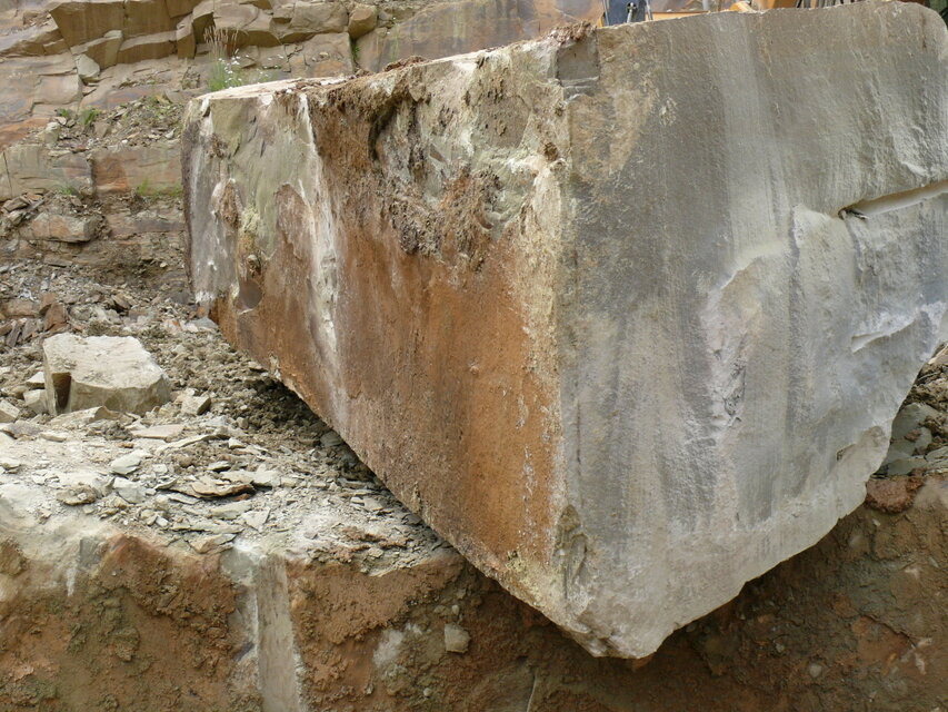 bis 6 m starken Bänken an und ist aufgrund seiner blockartigen Beschaffenheit ideal für die Gewinnung von Rohblöcken für die Weiterverarbeitung zu Werksteinen.
