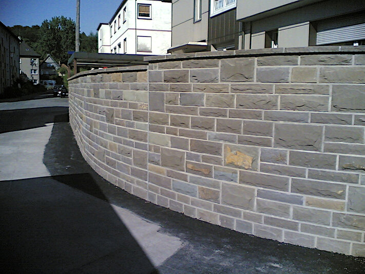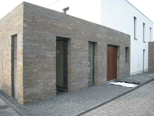 Unsere Grauwacke-Schichtsteine kommen als Vorsatzschale zur Verblendung von Mauern und Hauswänden zum Einsatz.